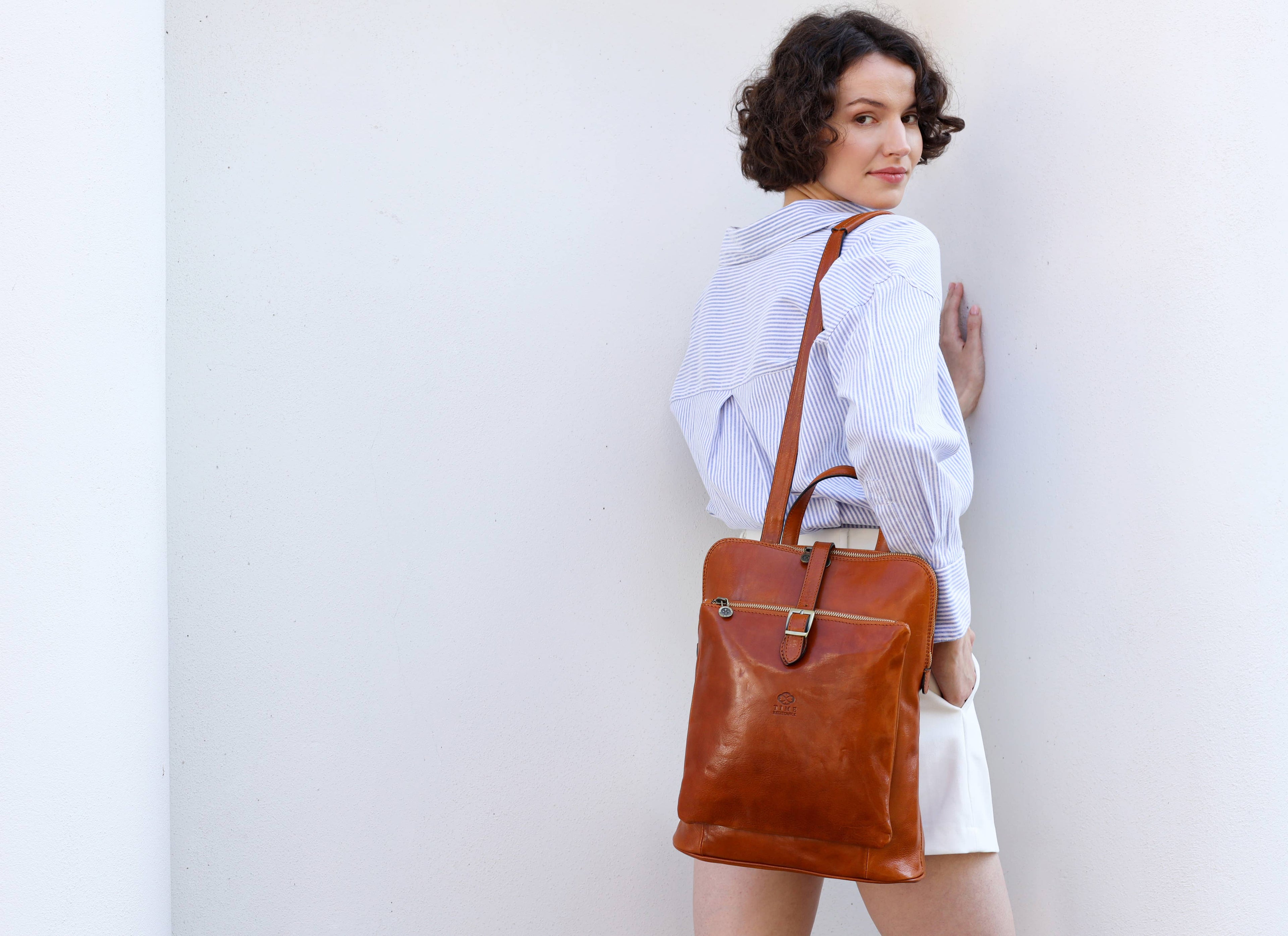Sac à Dos Convertible en Cuir pour Femme - Marron Cognac - Emma